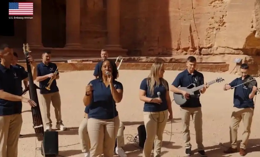 القلعة نيوز- أضاءت فرقة القوات الجوية الأمريكية المركزية مدينة البترا الوردية بحفل موسيقي مصغر جلب المواهب الموسيقية الأمريكية والأغاني الشهيرة إلى مدينة البترا الأردنية الأسطورية.