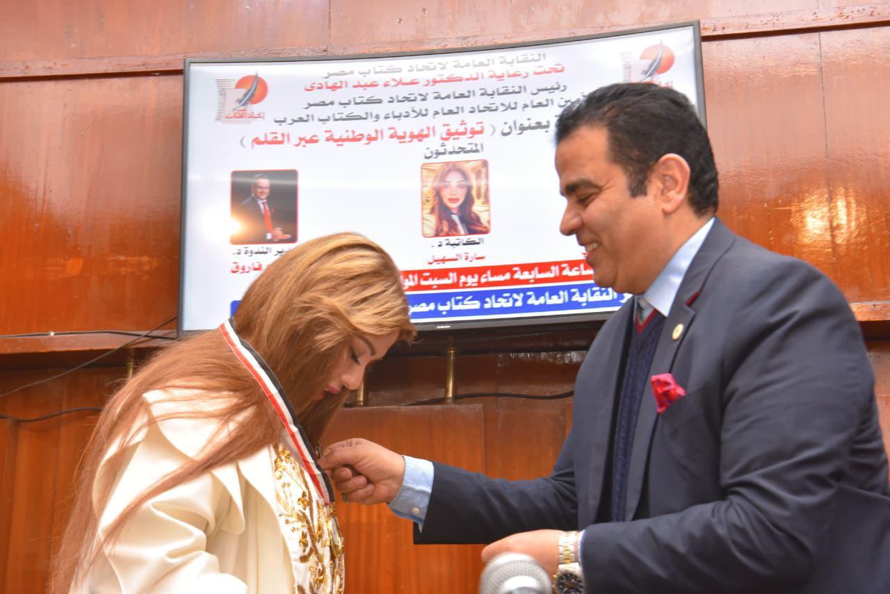 سارة طالب السهيل و اللواء اشرف فوزي في توثيق الهوية الوطنية عبر القلم»… (صور)