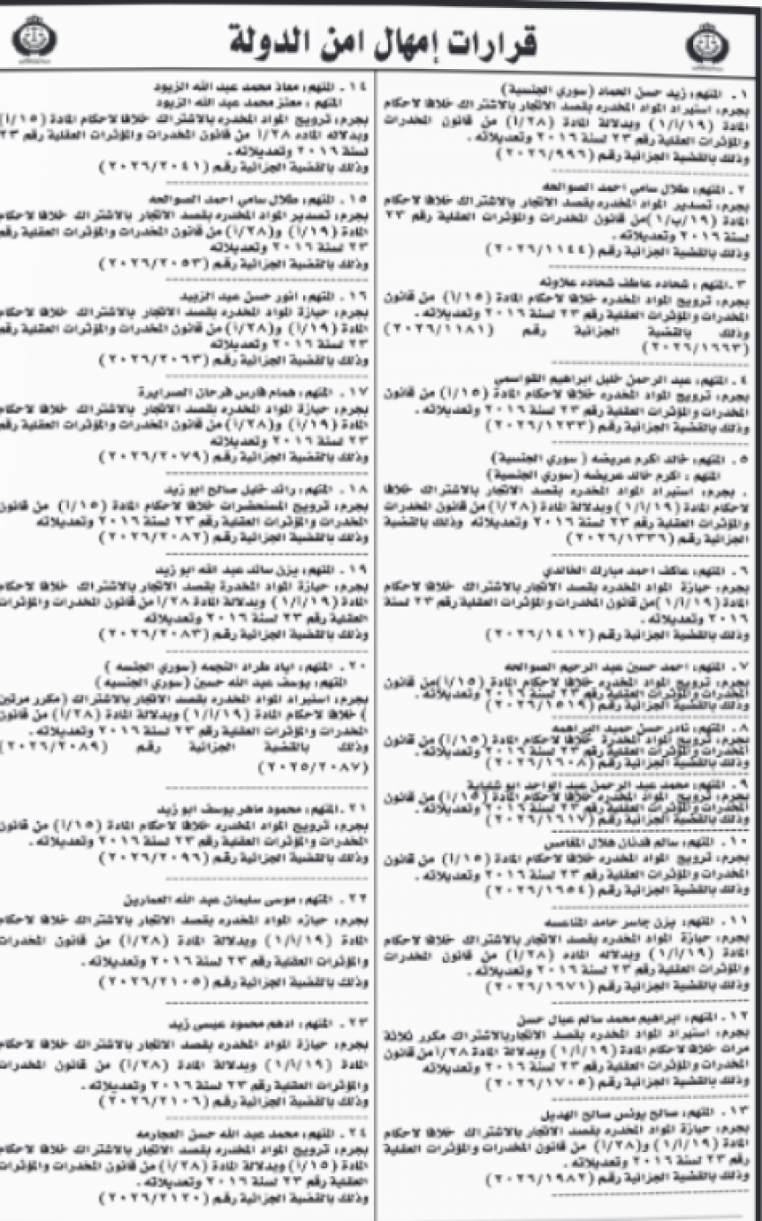 القلعة نيوز: أعلنت محكمة أمن الدولة، اليوم الأربعاء، عن منح عدد من المتهمين مهلة قدرها 10 أيام لتسليم أنفسهم.