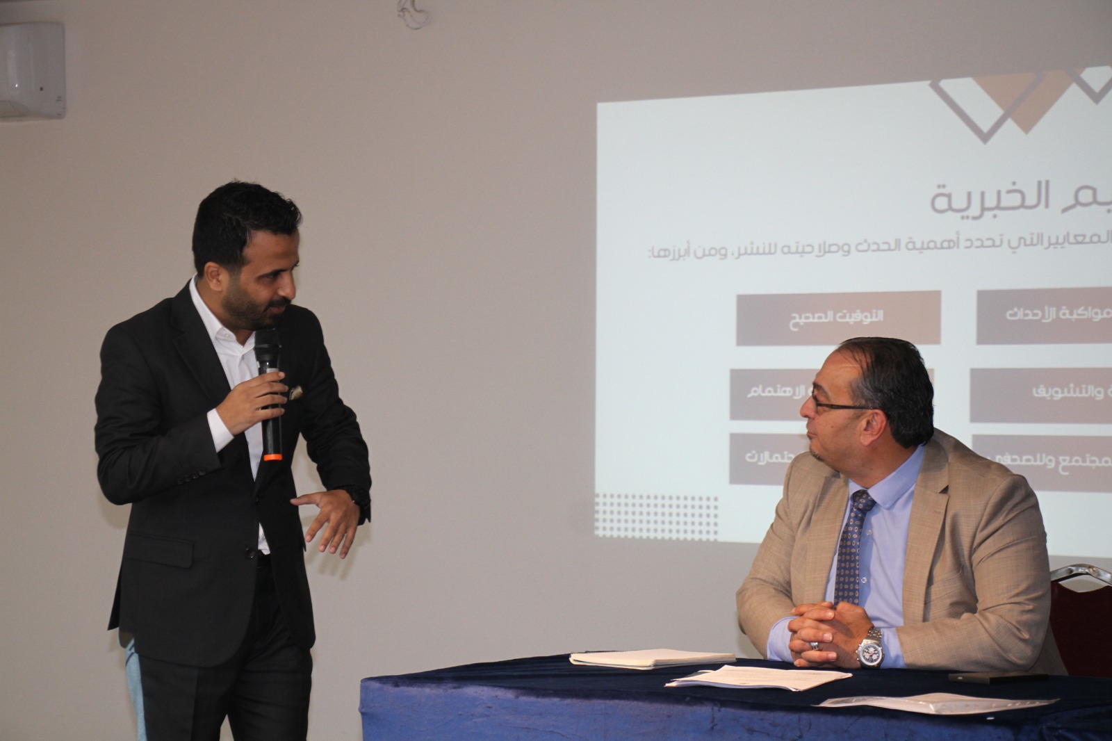 و قدّم الورشة الزميل عدي محمد الحنيطي، المتخصص في الصحافة والإعلام الرقمي، حيث تناول خلالها أسس التحرير الصحفي، وآليات إدارة المحتوى الإعلامي المدرسي، وأهمية التحقق من المعلومات قبل النشر، بما يتوافق مع المعايير المهنية والأخلاقية للعمل الإعلامي.