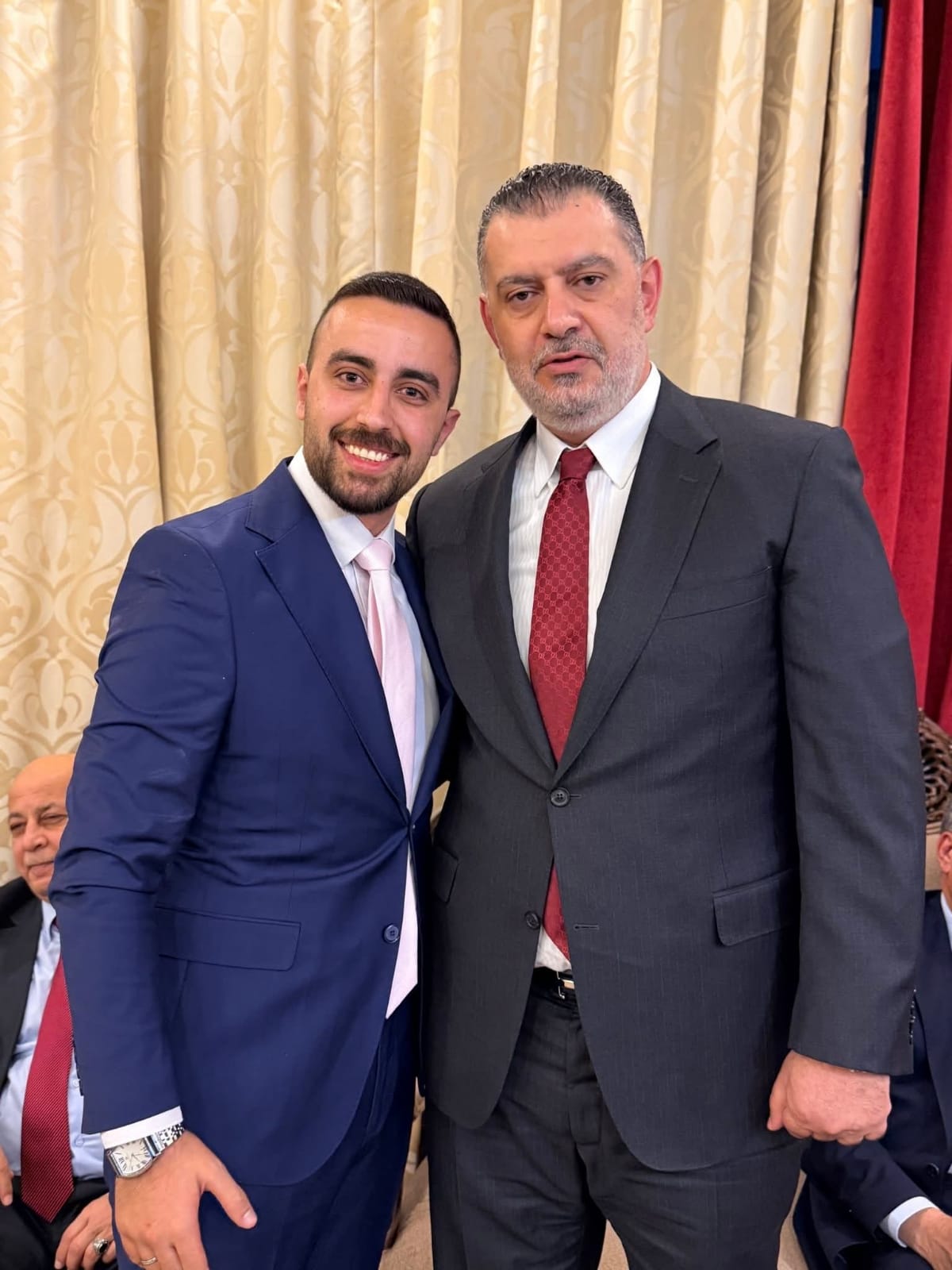 وكان باستقبالهِم وجهاء عشيرة أبو طبنجة وعدد من أصحاب المعالي والسعادة النواب يتقدَّمهُم رئيس مجلس النواب السابق سعادة النائب أحمد الصَفدي، وذلك لطلب يدّ كَريمة العميد المُتقاعد جبري أبو طَبنجة للشاب محمد عبدالله نايف البَطاينة.
