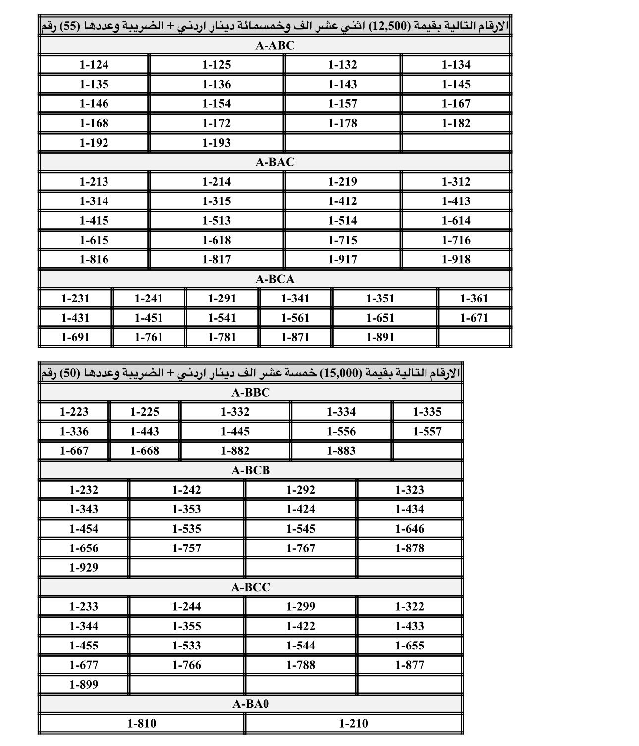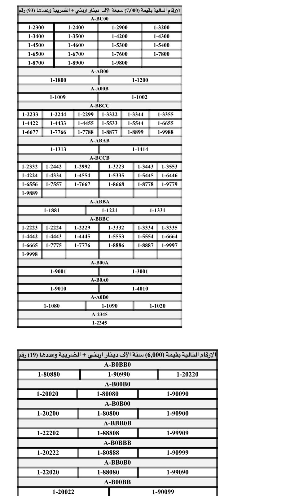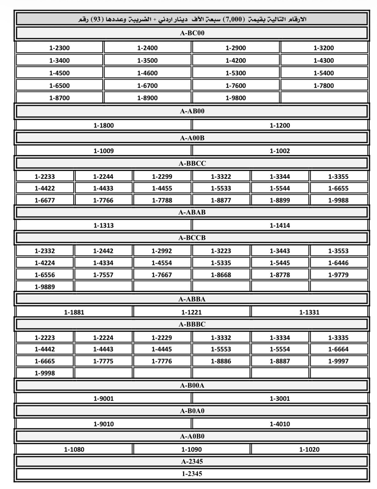 القلعة نيوز- أعلنت إدارة ترخيص السواقين والمركبات عن طرح أرقام مميزة من الارقام الثلاثاية والرباعية والخماسية للبيع المباشر على بوابتها.