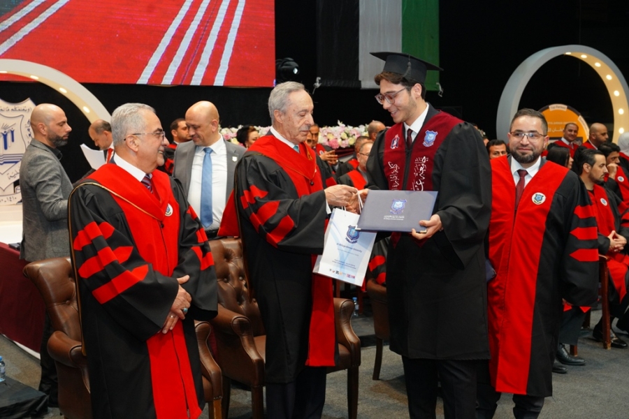 رعى دولة الاستاذ عبدالكريم الكباريتي رئيس مجلس أمناء جامعة عمان الاهلية مساء أمس 15-2-2026 على مسرح الأرينا احتفال اليوم الاول لجامعة عمان الاهلية بتخريج طلبتها للفصل الاول 2025- 2026 من الفوج (33) لكليات : " الدراسات العليا ، الآداب والعلوم ، العلوم التربوية ، إدارة الضيافة والسياحة ، الحقوق ، الأعمال " ، بحضور الاستاذ الدكتور ساري حمدان رئيس الجامعة ، والاستاذ عمر الحوراني نائب رئيس هيئة المديرين ، وعدد من أعضاء مجلس الأمناء ، ونائب رئيس الجامعة الاستاذ الدكتور احمد حمدان " عميد كلية طب الاسنان " ، ومساعد الرئيس لشؤون الاعتماد والجودة والتخطيط الدكتور إياد شعبان، والسادة العمداء ، وأعضاء الهيئة التدريسية ، وعدد من أعضاء الهيئة الإدارية ، وحشد كبير من ذوي الطلبة الخريجين والمدعوين .