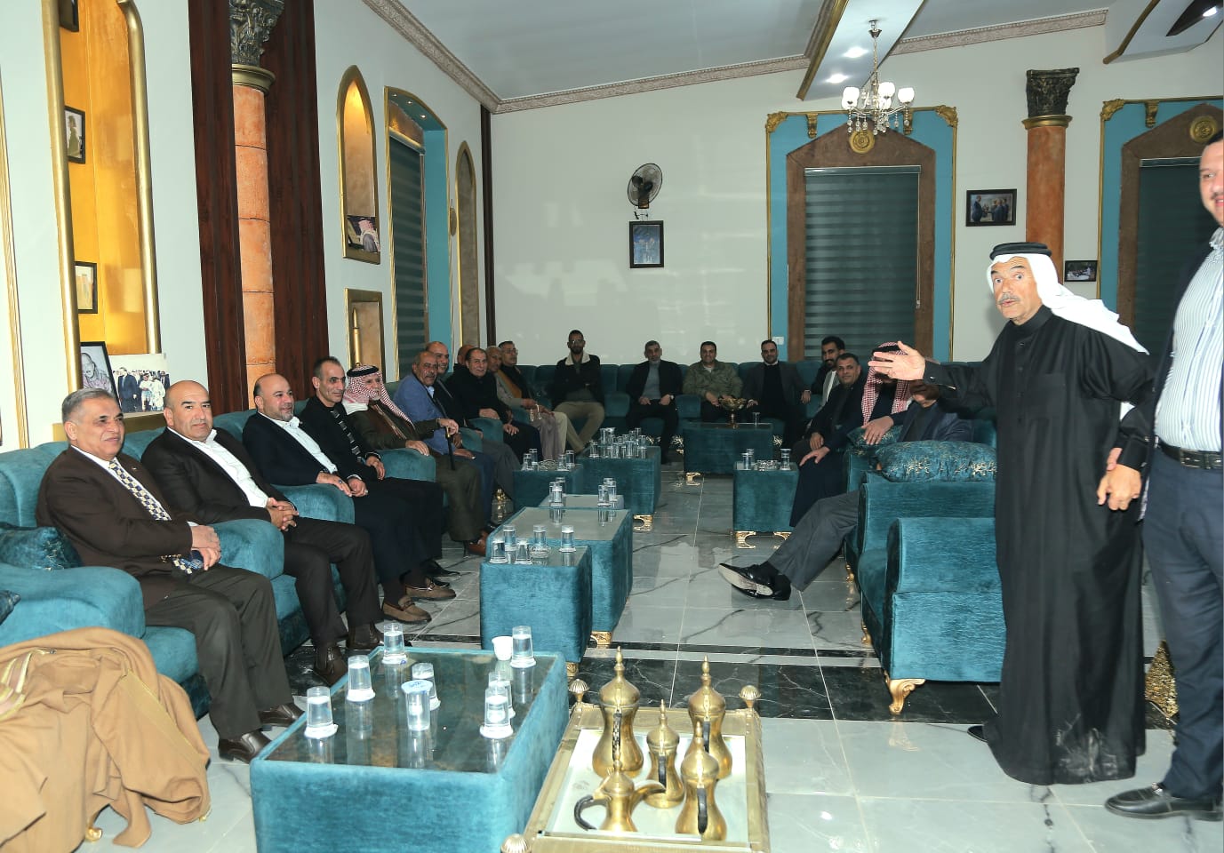 أستقبل الشيخ هاني شحاده الحديد / ابوهيثم في ديوانه بمنطقة اللبن جنوب عمان مساء أمس الإثنين جموع غفيره من المهنئين له بأختيار نجله هشام هاني شحاده الحديد ممثلا للقطاع الصناعي في هيئة مستثمري المناطق الحرة ، وقد سادت أجواء الفرح والسرور لدى جميع الحضور داعيين ومتمنين للشيخ الحديد دوام الصحه والعافيه ولنجله هشام الحديد التوفيق والتقدم والنجاح في ظل حضرة صاحب الجلاله الملك عبدالله الثاني بن الحسين المعظم وولي عهده الامين سمو الامير الحسين بن عبدالله الثاني حفظهم الله ورعاهم والف الف مبروك.