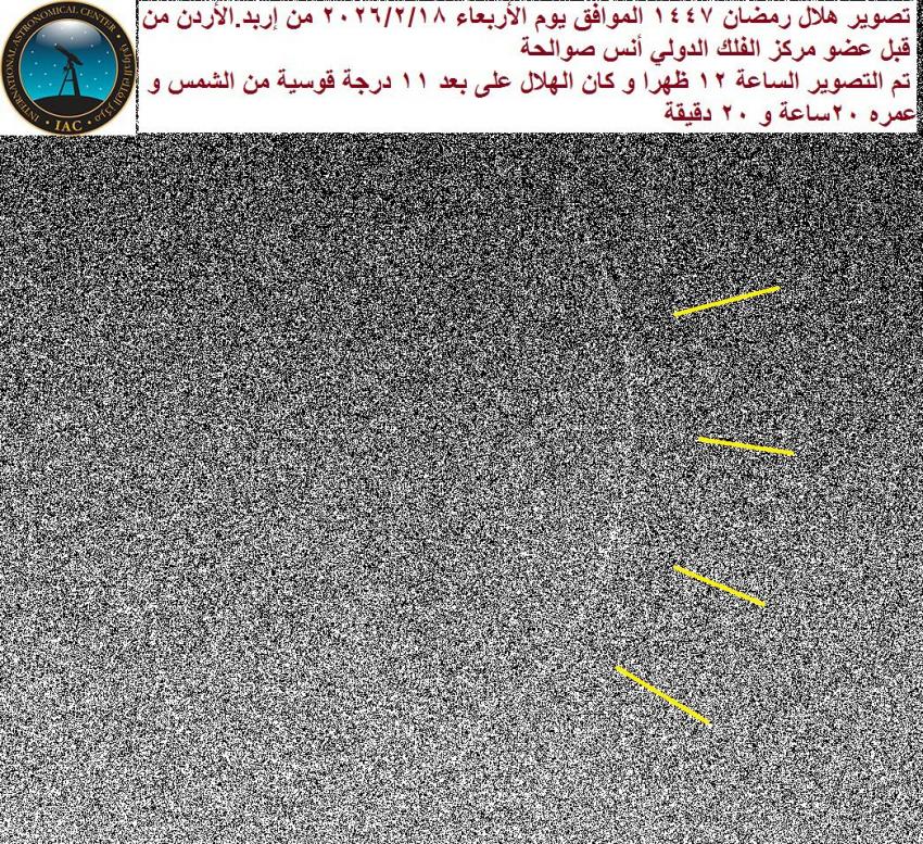 ونشرت صفحة مركز الفلك الدولي صور الهلال التي تم التقاطها نهار اليوم الأربعاء 18 فبراير 2026 من خمس دول مختلفة، وهي الموضحة أدناه مع اسم الدولة والراصد.