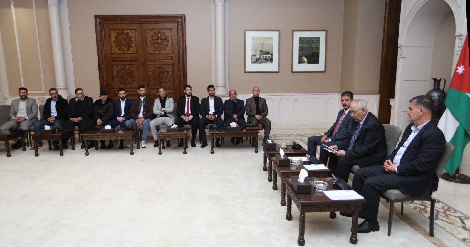 القلعة نيوز-التقى رئيس الديوان الملكي الهاشمي يوسف حسن العيسوي، اليوم الخميس، في الديوان الملكي الهاشمي، وفداً شبابياً من أبناء عشائر القيسية.
