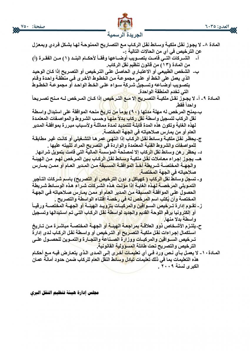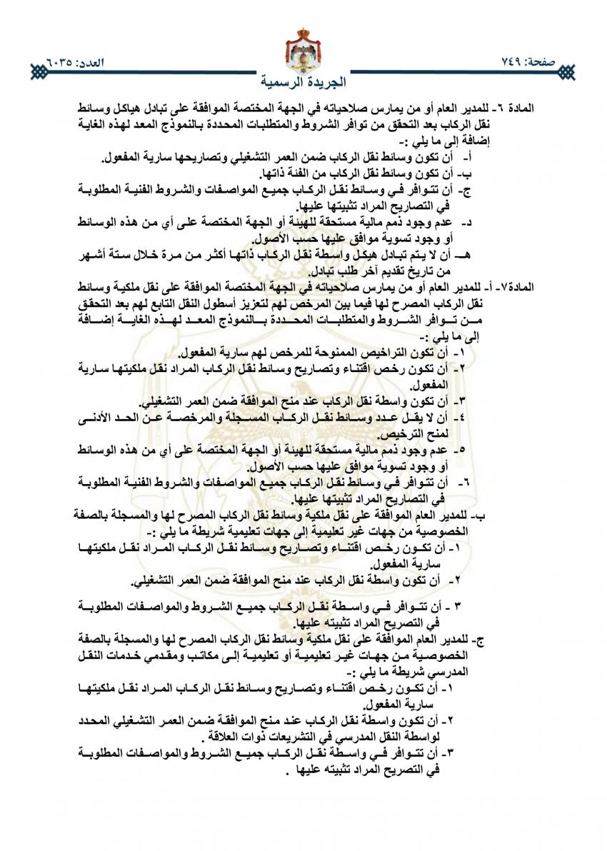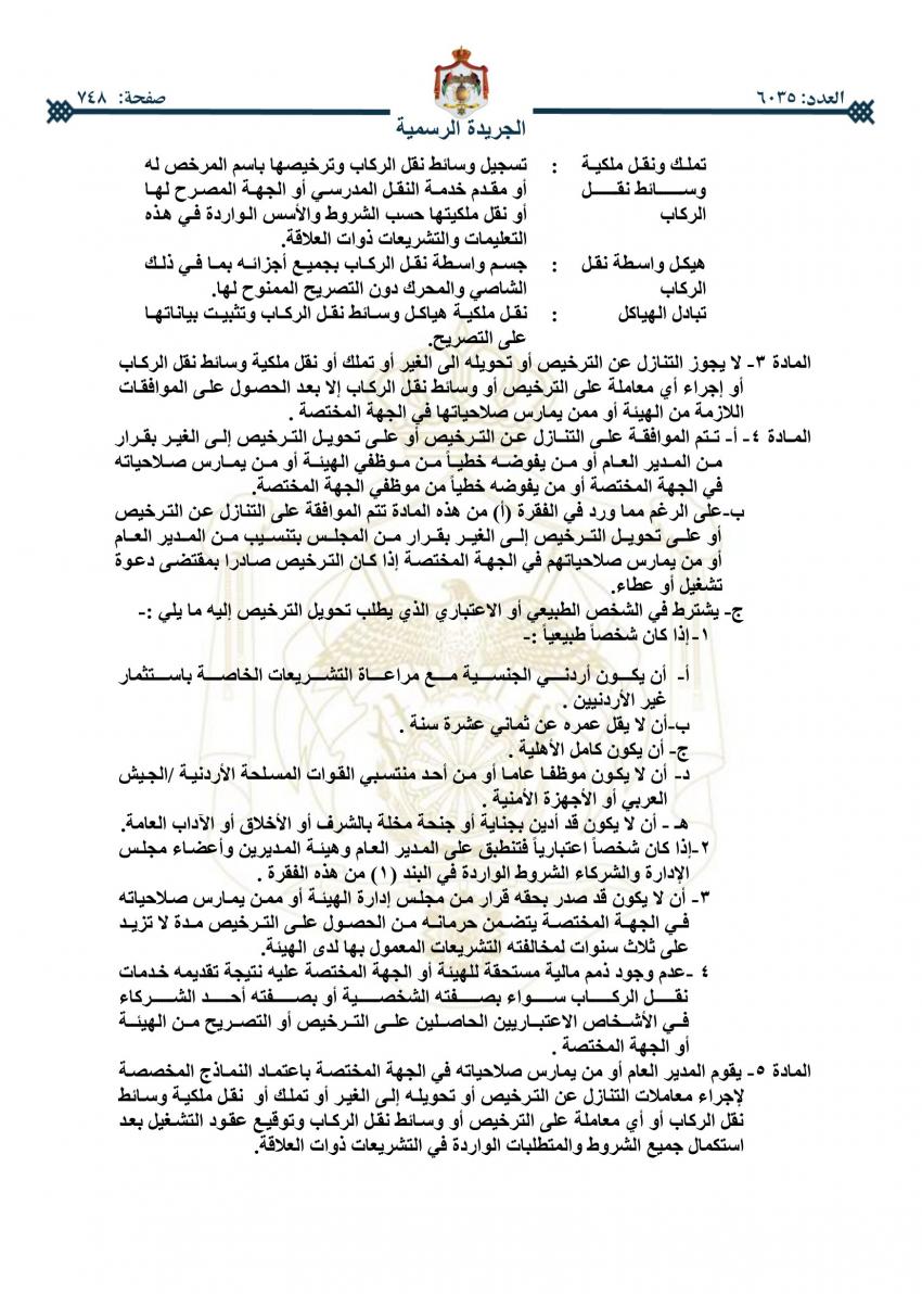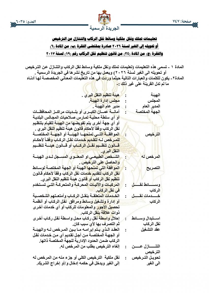 القلعة نيوز - صدرت في عدد الجريدة الرسمية اليوم الخميس، تعليمات تملك ونقل ملكية وسائط نقل الركاب والتنازل عن الترخيص أو تحويله إلى الغير لسنة 2026.