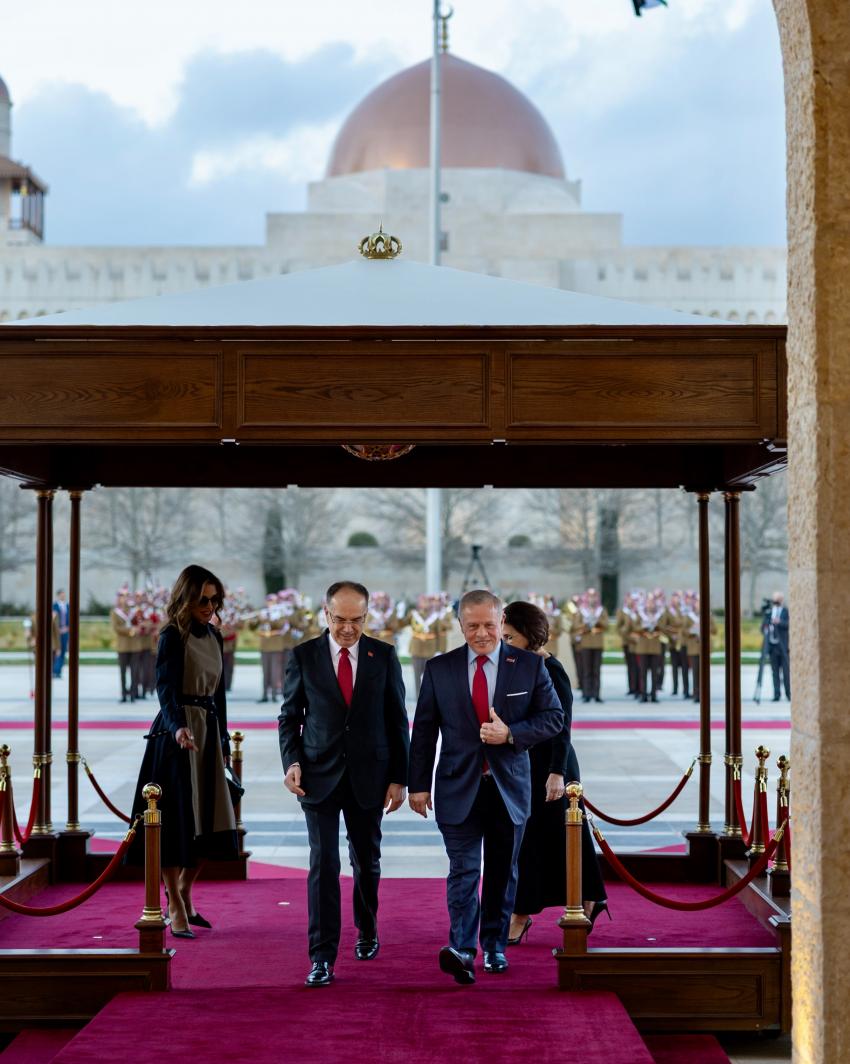 القلعة نيوز - عقد جلالة الملك عبدﷲ الثاني والرئيس الألباني باجرام بيجاج مباحثات في قصر الحسينية، اليوم الأحد، ركزت على سبل توسيع التعاون والارتقاء بعلاقات الصداقة بين الأردن وألبانيا.