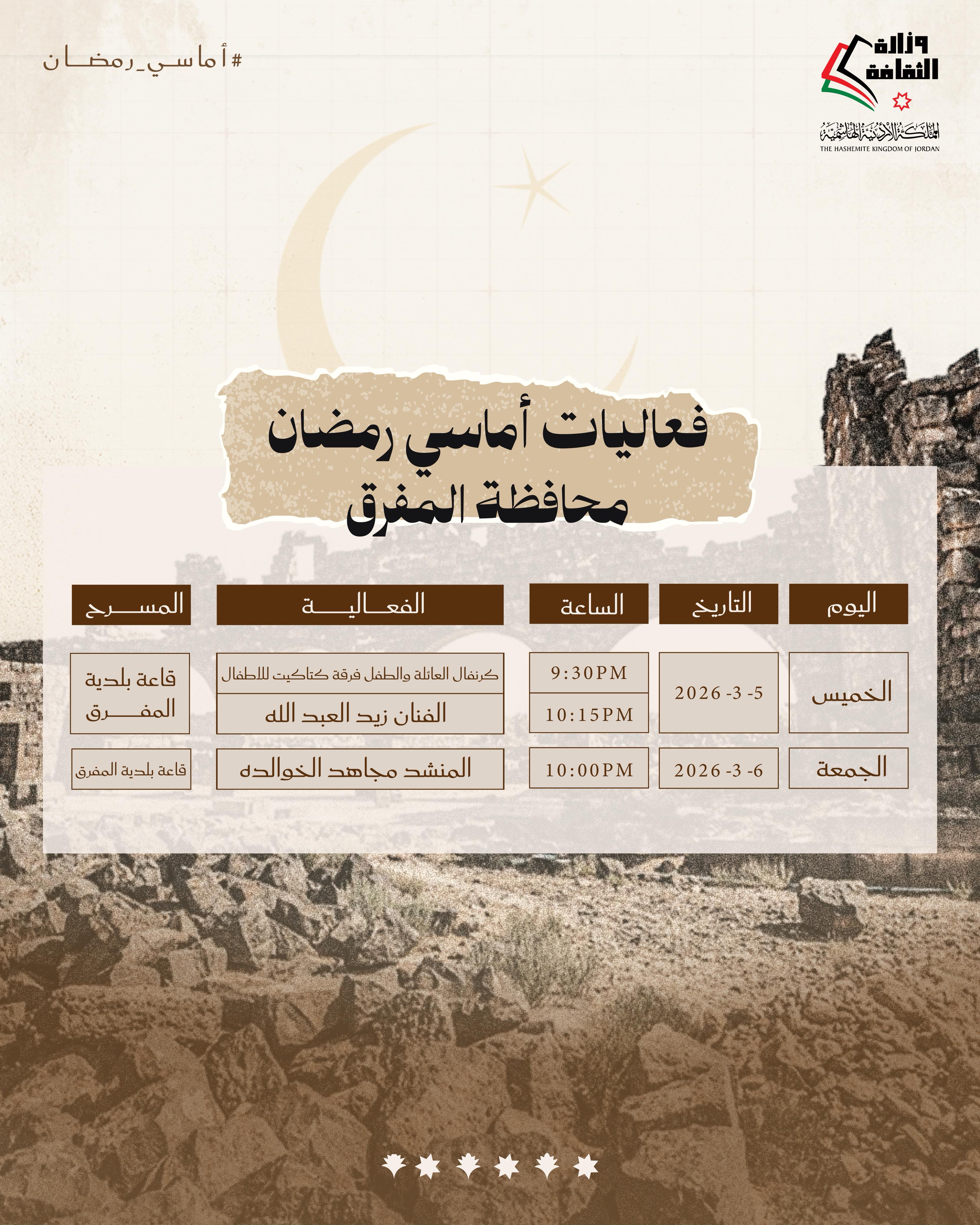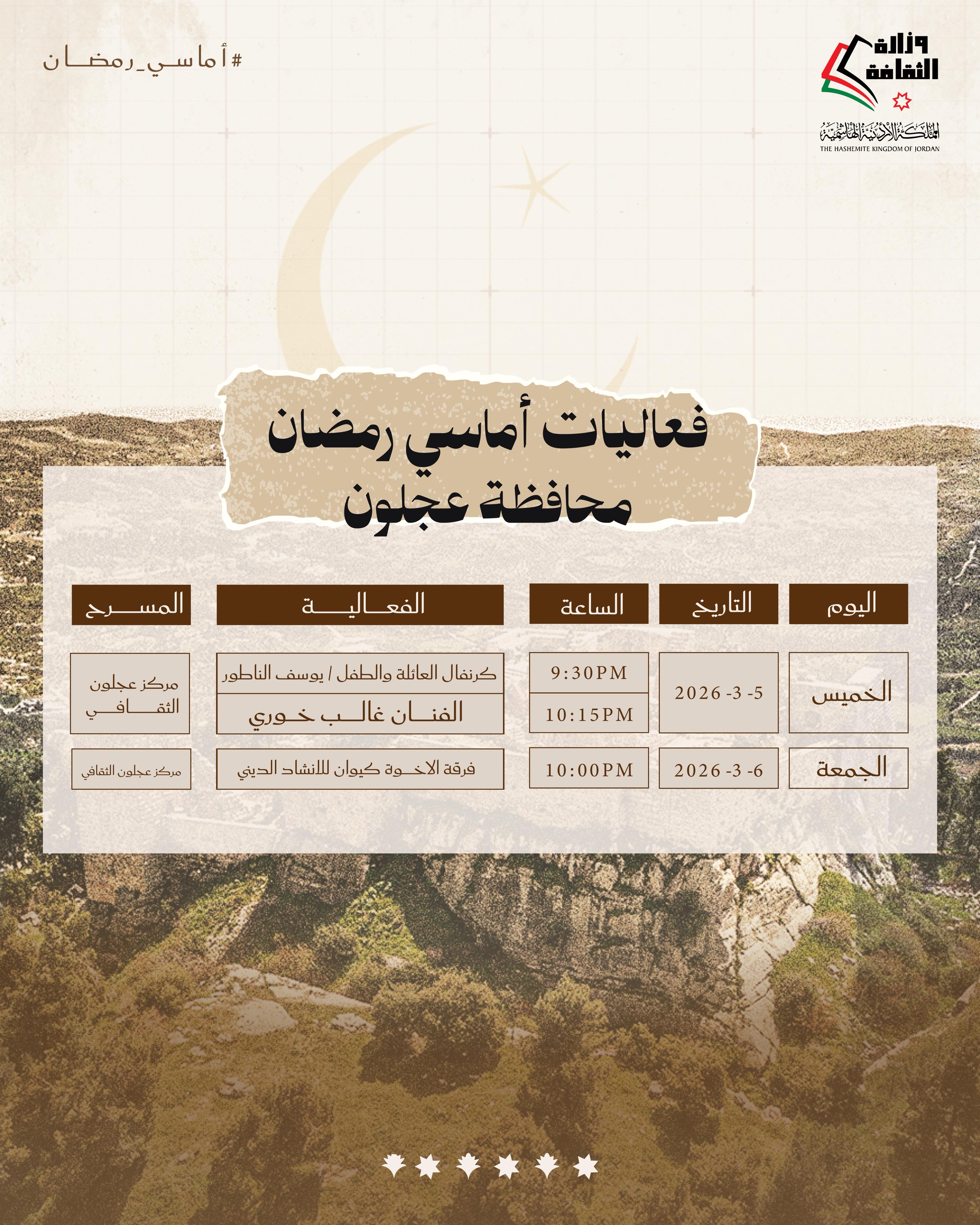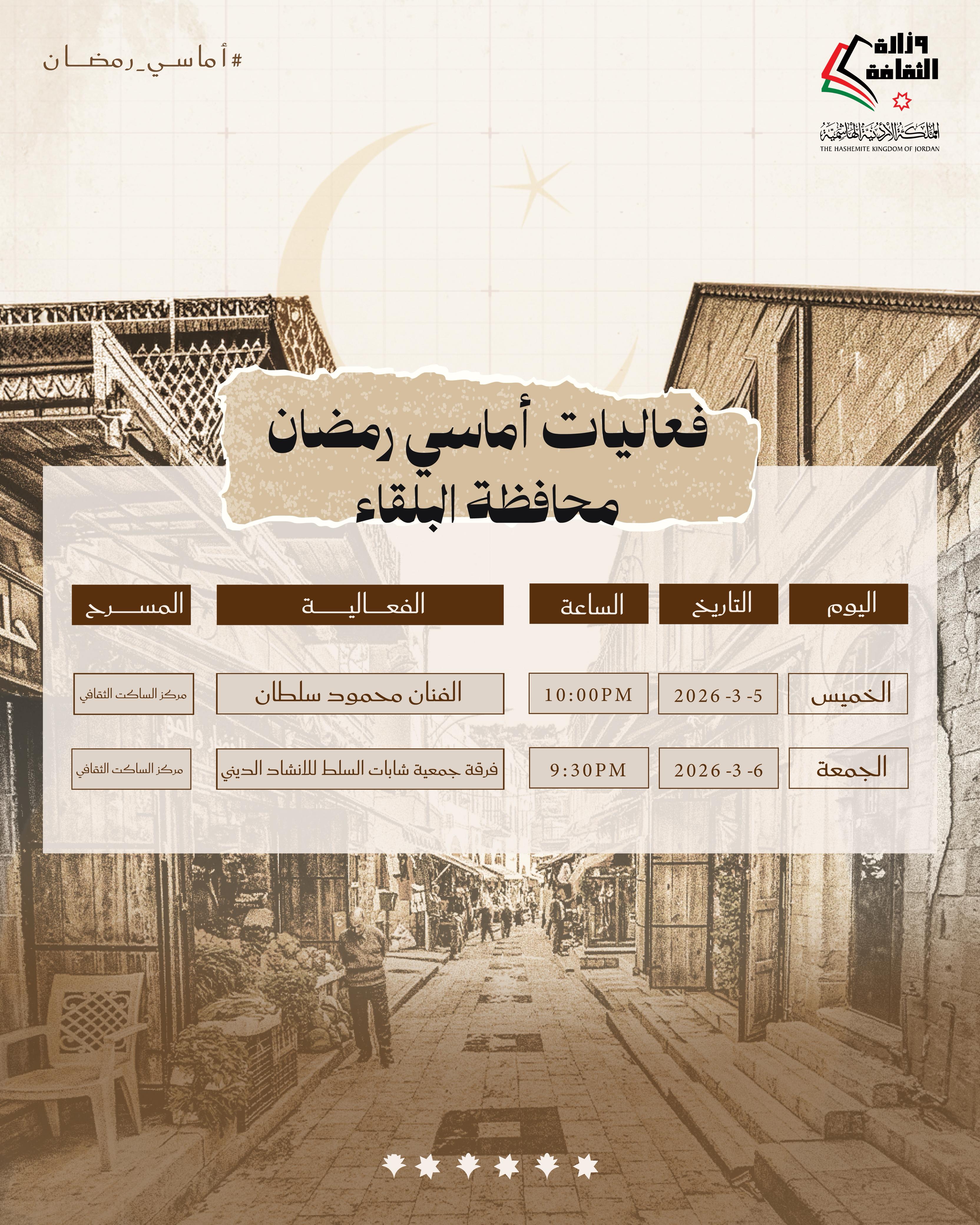 وزارة الثقافة تعلن عنأماسي رمضان في اسبوعها الثالث