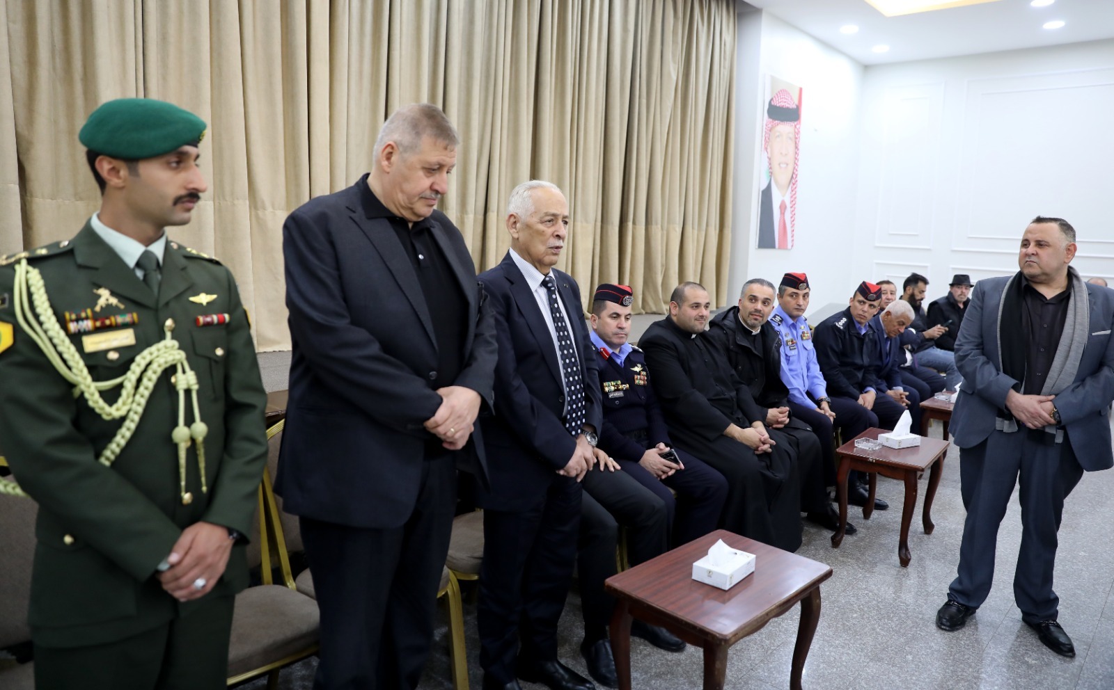 *البلقاء- 10 آذار 2026-* مندوبا عن جلالة الملك عبدالله الثاني وسمو والأمير الحسين بن عبدالله الثاني، ولي العهد، قدم رئيس الديوان الملكي الهاشمي يوسف حسن العيسوي، اليوم الثلاثاء، واجب العزاء إلى عشيرة السميرات بوفاة المرحومة مرسيل طعيمة السميرات أرملة المرحوم جريس سمعان السميرات وشقيقة النائب السابق رائد السميرات.