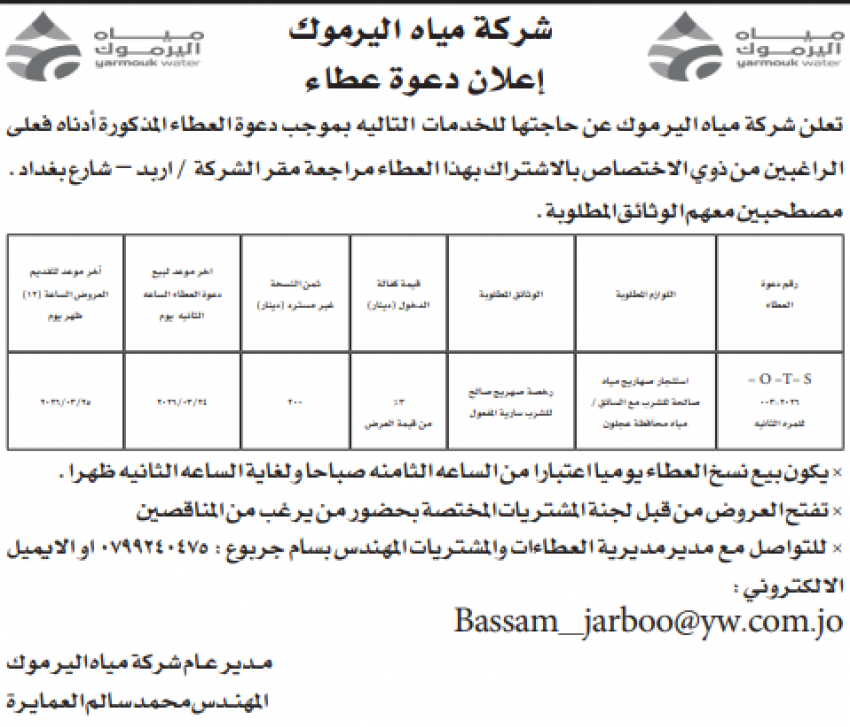 عطاءات صادرة عن شركة الكهرباء الوطنية