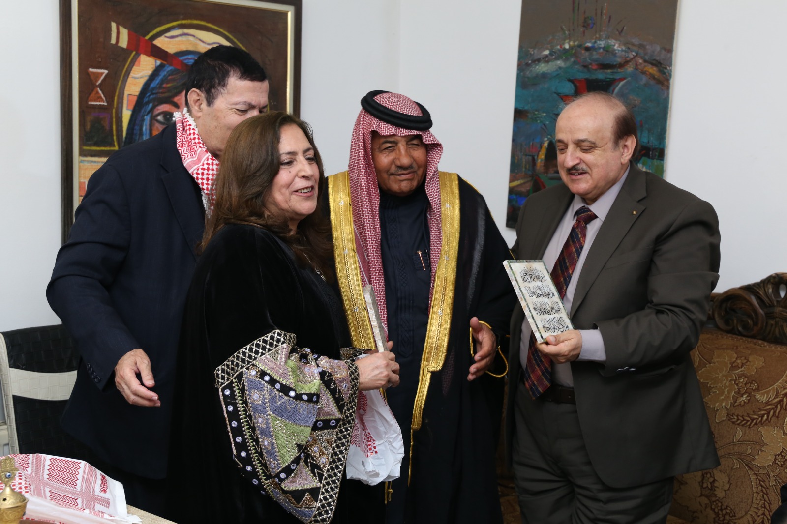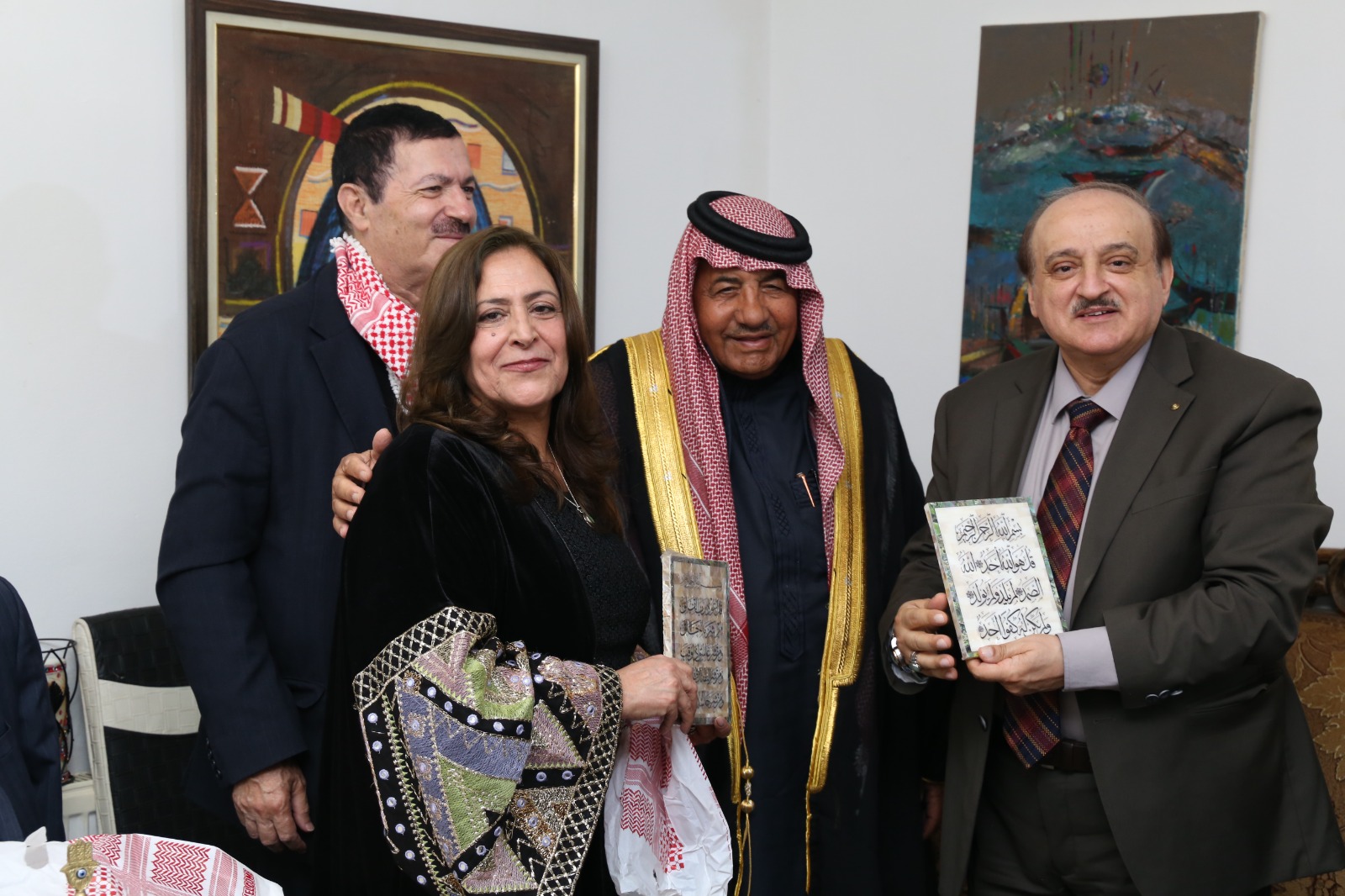 الحفل اقيم برعاية معالي الدكتور بركات عوجان وزير الثقافة الأسبق وبحضور ضيف الشرف سعادة الشيخ علي الزيدان الحنيطي والمؤرخ الاستاذ عمر العرموطي.