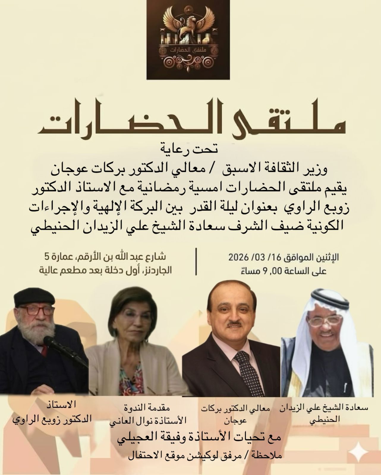 د.عوجان والشيخ الحنيطي والمؤرخ العرموطي يشاركون في ندوة عن ليلة القدر في ملتقى الحضارات