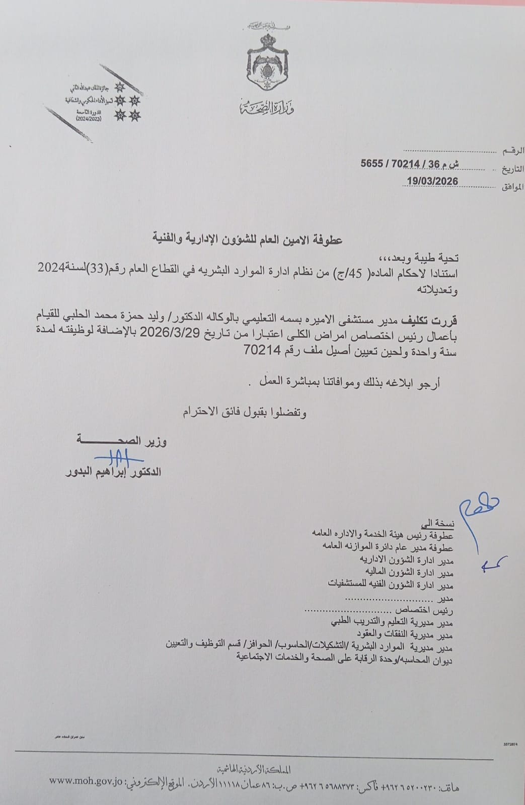 ومن الجدير بالذكر أنه حظي بشرف إدارة مستشفى الأميرة بسمة التعليمي الجديد، أحد أهم الصروح الطبية في المملكة، في خطوة تعكس حجم الثقة بقدراته القيادية والمهنية.