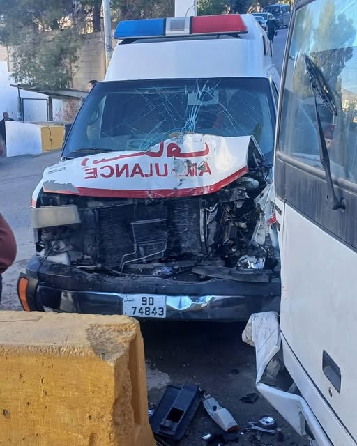 حادث سير لسيارة إسعاف تابعة لمستشفى الأمير زيد في الطفيلة