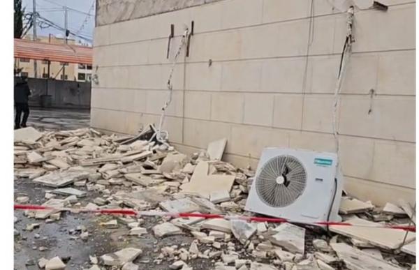 سقوط واجهة مبنى في إربد بسبب الظروف الجوية