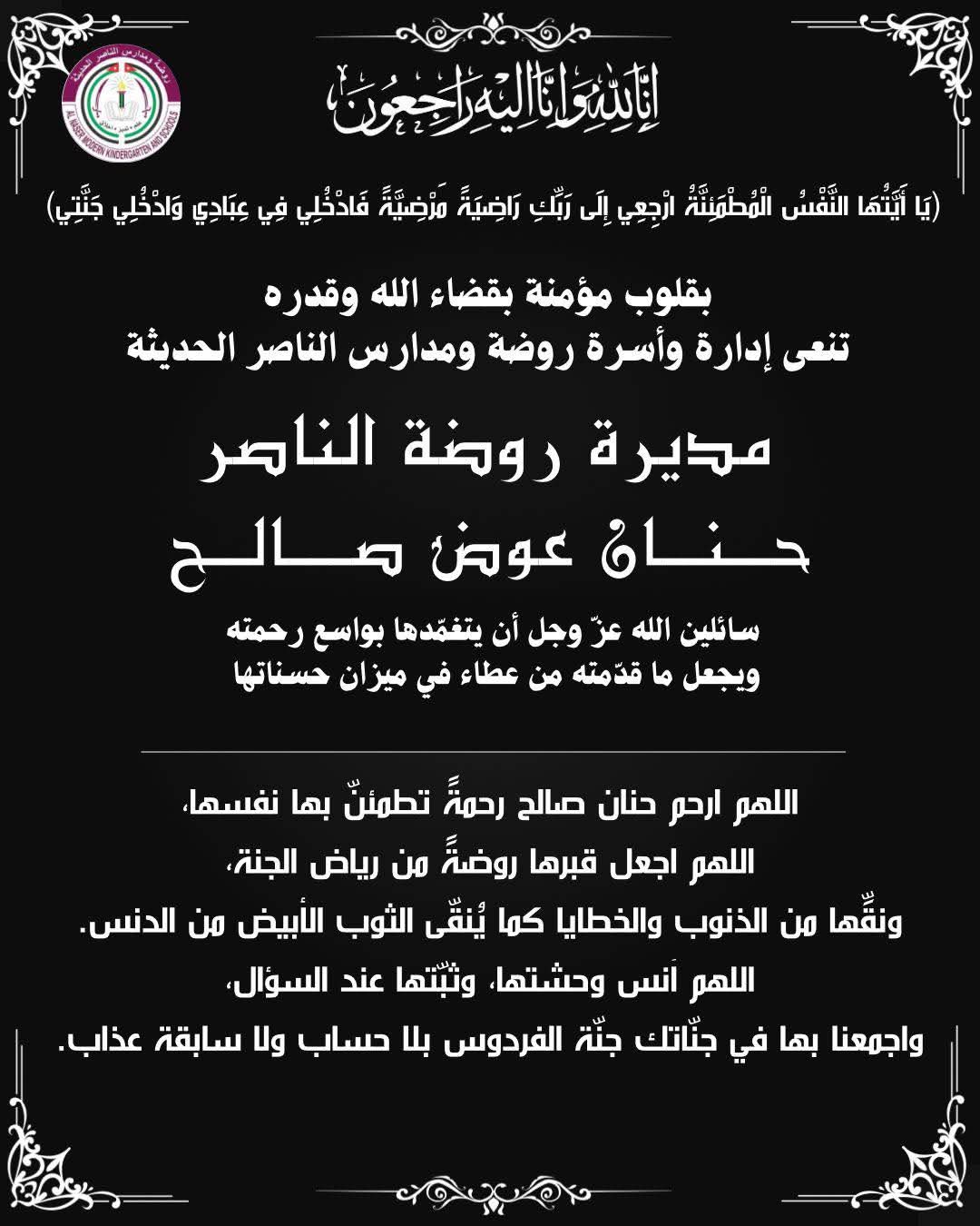 الحزن يعم منطقة النصر وعدن لوفاة مديرة روضة الناصر حنان عوض صالح بعد مسيرة 23 عام
