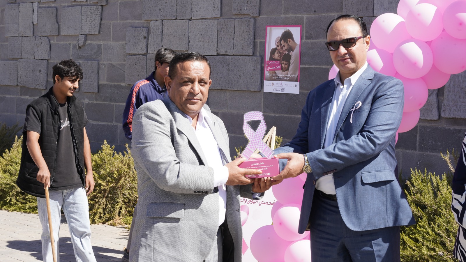وشارك في البرنامج رئيس لجنة بلدية ام الجمال محمد أبو عليم وضابط ارتباط البرنامج فرع المفرق فاطمة العمري ومديرية التنمية الاجتماعية البادية الشمالية الغربية وجدان البدارين والجمعيات الخيرية والهيئات التطوعية وممثلا عن مركز الحسين للسرطان ريم العجلوني و مديرية صحة المفرق ومراكز الأميرة بسمة الأجهزة الأمنية