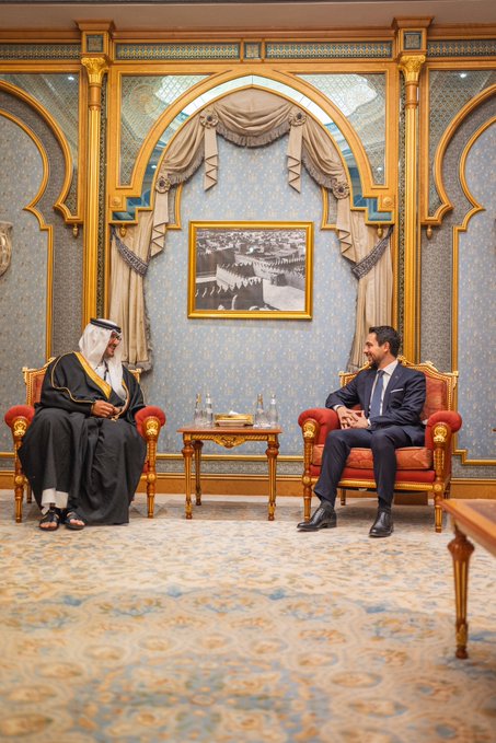 القلعة نيوز- التقى سمو الأمير الحسين بن عبدﷲ الثاني ولي العهد، اليوم الثلاثاء، بسمو الشيخ عيسى بن سلمان بن حمد آل خليفة وزير ديوان رئيس مجلس الوزراء، رئيس وفد مملكة البحرين المشارك في مؤتمر مبادرة مستقبل الاستثمار المنعقد في الرياض.