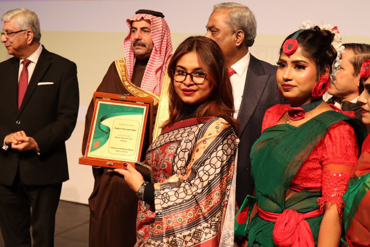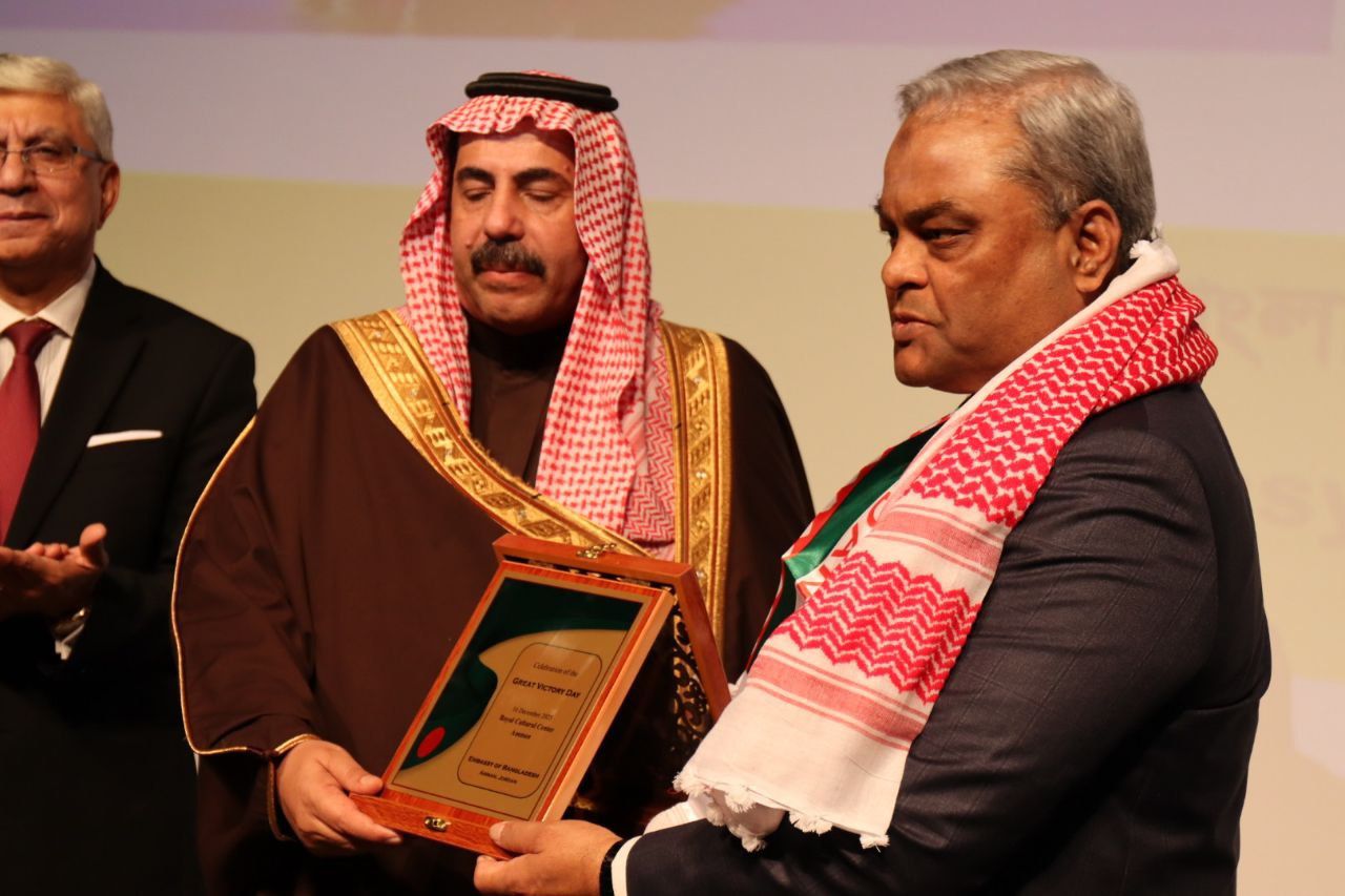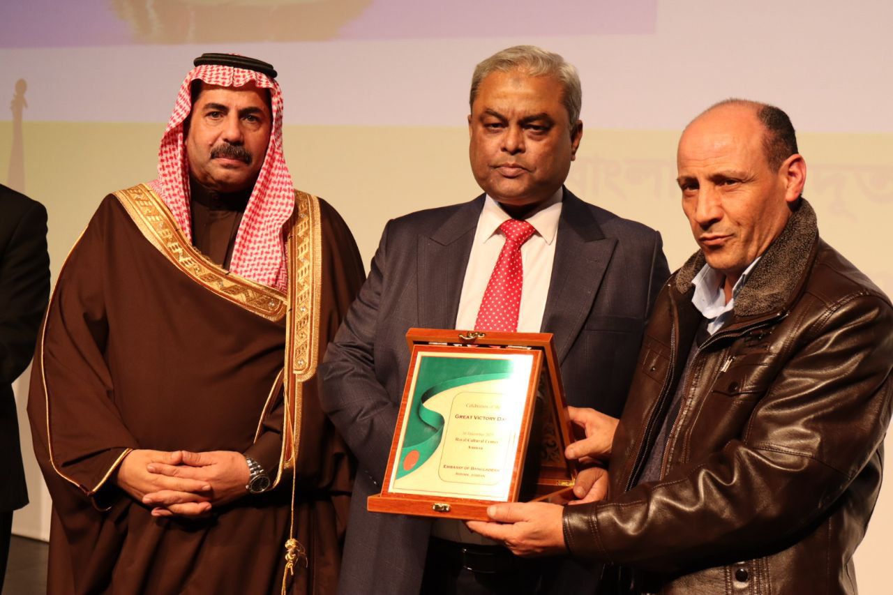 احتفلت سفارة بنغلادش في الاردن امس الثلاثاء بمناسبة يوم النصر تحت رعاية النائب الشيخ ايمن البدادوة بحضور جمع من المدعوييين واسرة جمعية الصداقة الاردنية البغلادشية في الاردن والشيخ علي الزيدان الحنيطي الرئيس الفخري لجمعية الصداقة الاردنية مع بنغلادش وتخلل الحفل تكريم واغاني وطنية اردنية واغاني بنغلادشية .