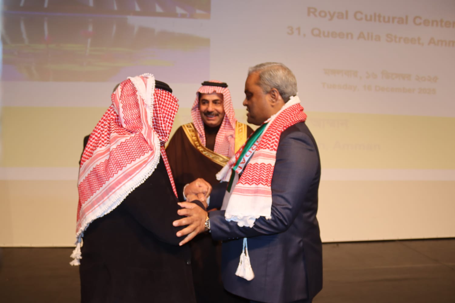 On this occasion, I also express my hope that relations between Jordan and Bangladesh will continue to grow across various fields. The Jordanian–Bangladeshi Friendship Association plays an active role in supporting and advancing bilateral relations between the two countries.