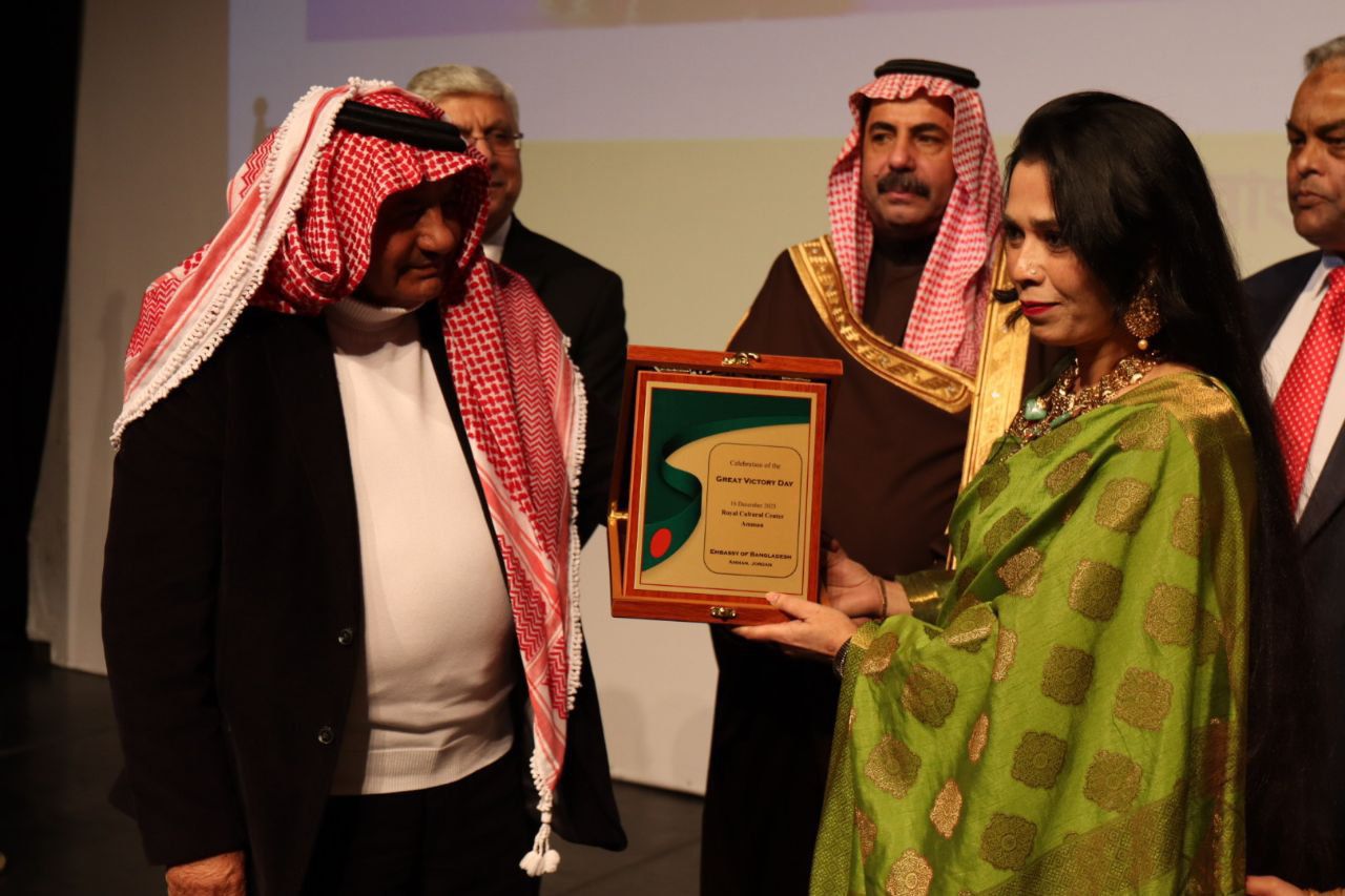 .... يجمعنا في الأردن مع بنغلاديش روابط الدين والتاريخ والمصالح المشتركة... وإنني أنتهز مُناسبة الاحتفال بيوم النصر في بنغلاديش فأتقدم باسمي وباسم زميلاتي وزملائي في جمعية الصداقة الأردنية مع بنغلاديش بالتهاني الخاصة والتمنيات الطيبة لشعب بنغلاديش الصديق والقيادة والحكومة البنغلاديشية.
