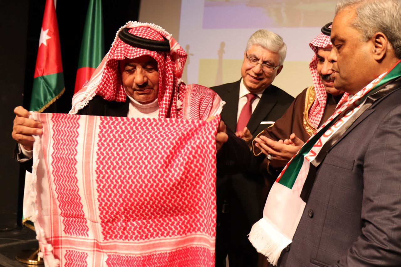 الشيخ علي الزيدان الحنيطي يكرم سفير بنغلادش في العلم والشماغ الاردني